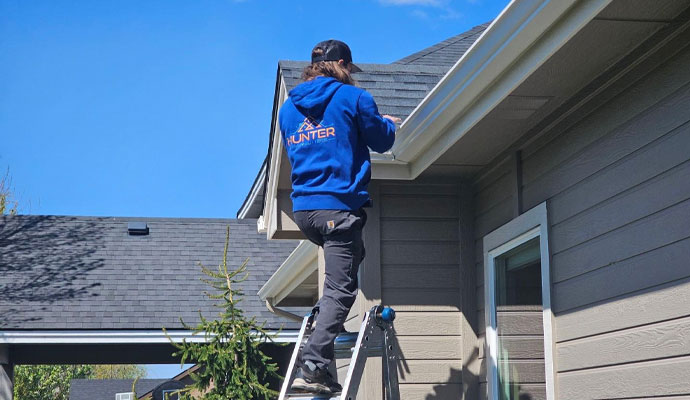 Hunter Rain Gutters provides full-service debris and twigs removal for homes and offices. Clogged gutters increase the risk of water overflow, roof damage, and dangerous slips. Our team clears downspouts, removes accumulated leaves and branches, and inspects gutters for damage or misalignment.